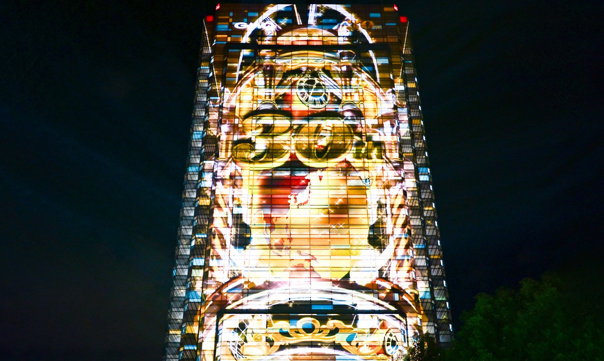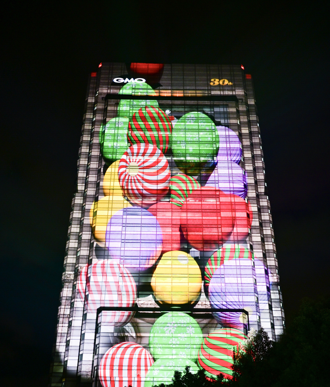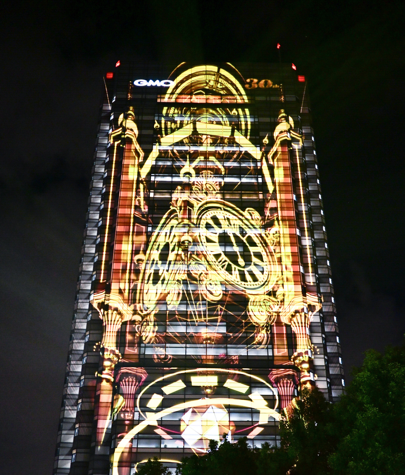 GMOインターネットグループ様の創立30周年を記念する特別プロジェクトとして、 用賀のランドマーク「GMOインターネットタワー」外壁(地上約120m)をキャンバスに、建物全面を使用した壮大なプロジェクションマッピングを実施いたしました。
